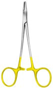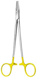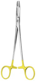 Most manufacturers colour the handles gold to signify whether a Needleholder has tungsten carbide tips. However, if the colour coding has worn off over time, you may be able to see a small line at the tip, marking where the tungsten carbide inserts sit.